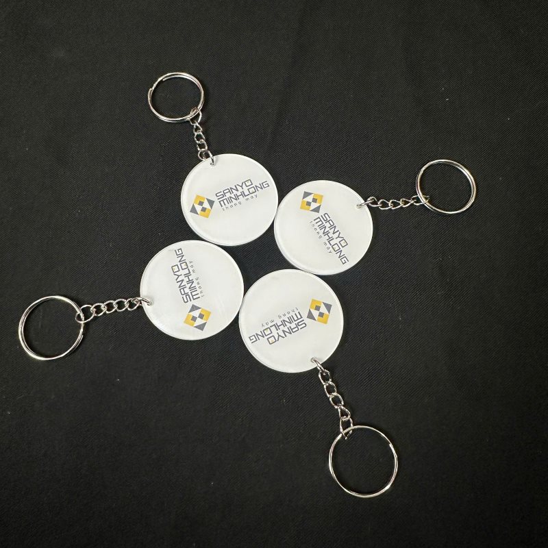 Móc khóa mica là loại móc khóa được làm từ chất liệu mica trong suốt, có thể in hình ảnh, logo hoặc thông tin thương hiệu bên trong.