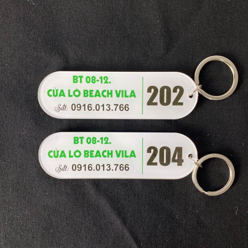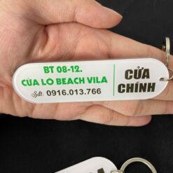 Thông thường, móc khóa sẽ được in số phòng, logo villa hoặc tên khu nghỉ dưỡng giúp khách dễ nhận diện phòng của mình.